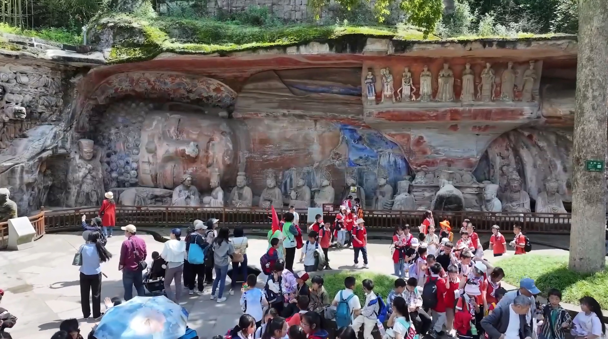 当晚的比赛不仅是一场体育竞技的胜利,更是大足文旅融合的生动实践。据统计,本场比赛吸引了超过2万名观众到场,更是有13.4万人观看大足融媒抖音号、大足融媒视频号的线上直播,一起见证大足石刻队的连胜。赛场之外,特色美食、万瓶本地精酿啤酒免费供应、观赛免费赏石刻等福利,更是吸引了不少外地游客专程而来,开启“白天赏石刻夜晚看球赛”的旅程。