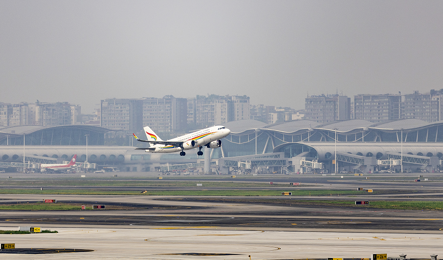 一架飞机从重庆江北国际机场起飞。新华社记者黄伟摄