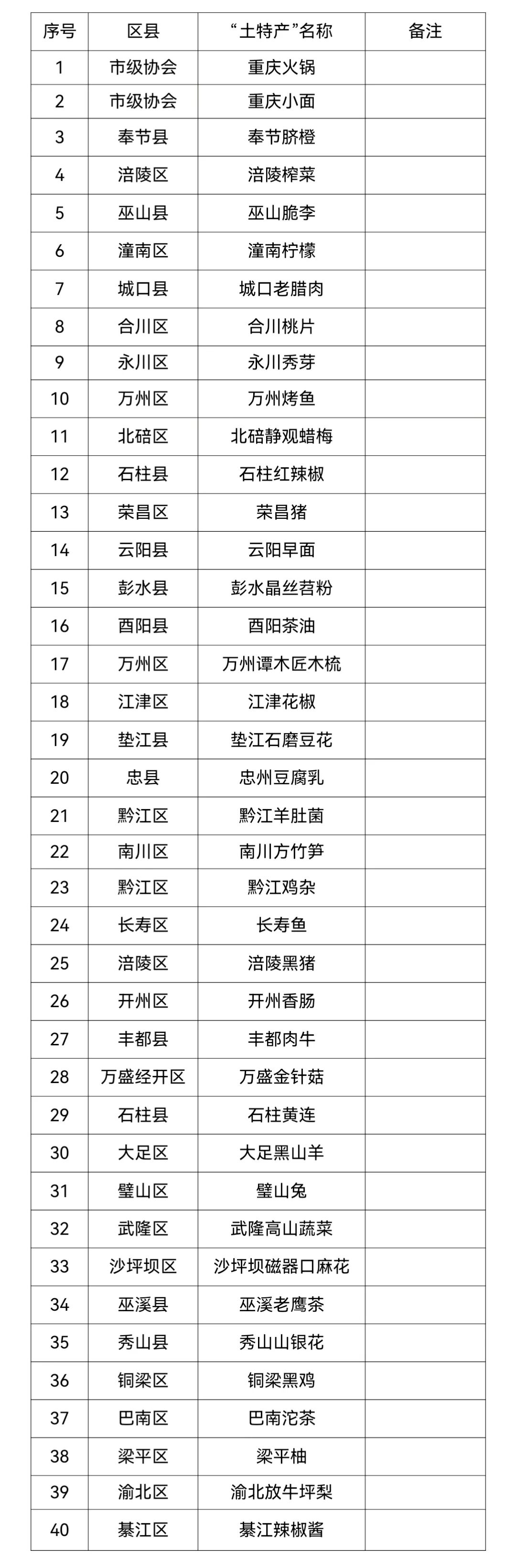据悉,2025年度巴渝“土特产”名优百品共40款产品,涵盖特色种养、特色手工、特色小吃等品类,包括重庆火锅、重庆小面、涪陵榨菜、永川秀芽、开州香肠、云阳早面、黔江鸡杂、城口老腊肉等。