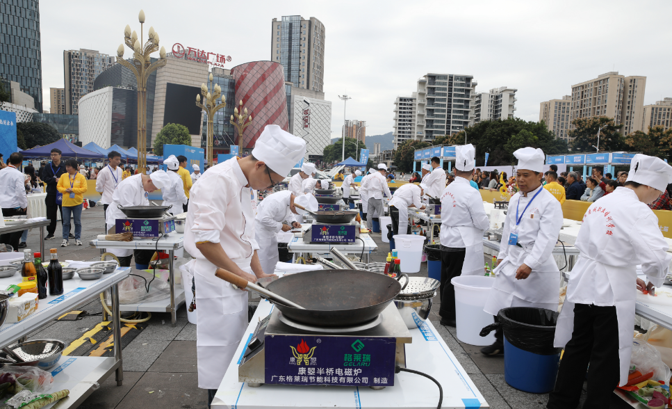在中式烹调比赛中,参赛选手们身着白色的厨师服装,整齐划一地站在案台前,熟练地准备食材;盆景制作比赛中,一株株金弹子在选手们的巧手下,瞬间变换成造型各异的形态;美发项目比赛中,各参赛选手拿着剪刀、吹风机,不停地在假发上操作,最终演绎出漂亮的发型……