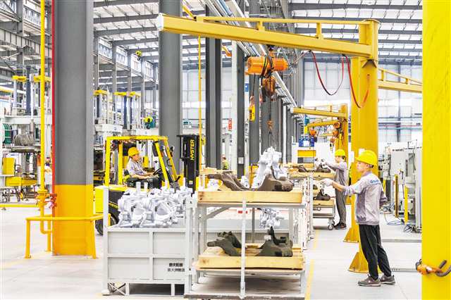 沙坪坝区青凤科创城,工人在拓普底盘车间进行生产。(资料图片)记者李雨恒摄/视觉重庆