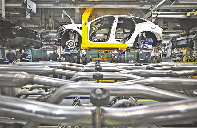重庆长安汽车两江工厂,工人正在生产线上忙碌。(资料图片)首席记者龙帆摄视觉重庆