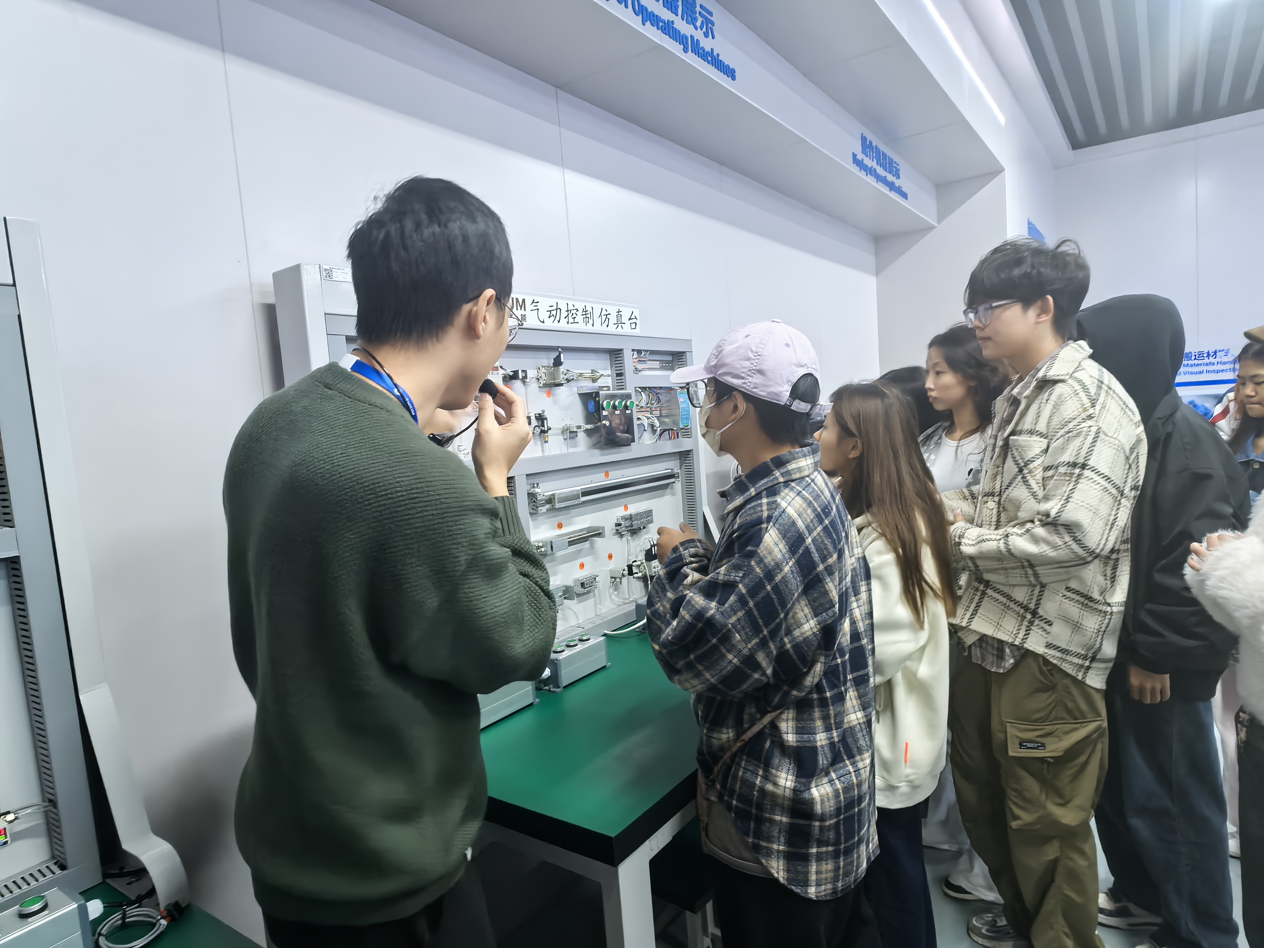 尤其是在海辰储能的实训道场,学生们亲身体验了气动控制仿真平台、涂布培训VR体感互动、3D绘图打印等实训模块,感受人工智能等前沿技术在制造业中的实际应用。