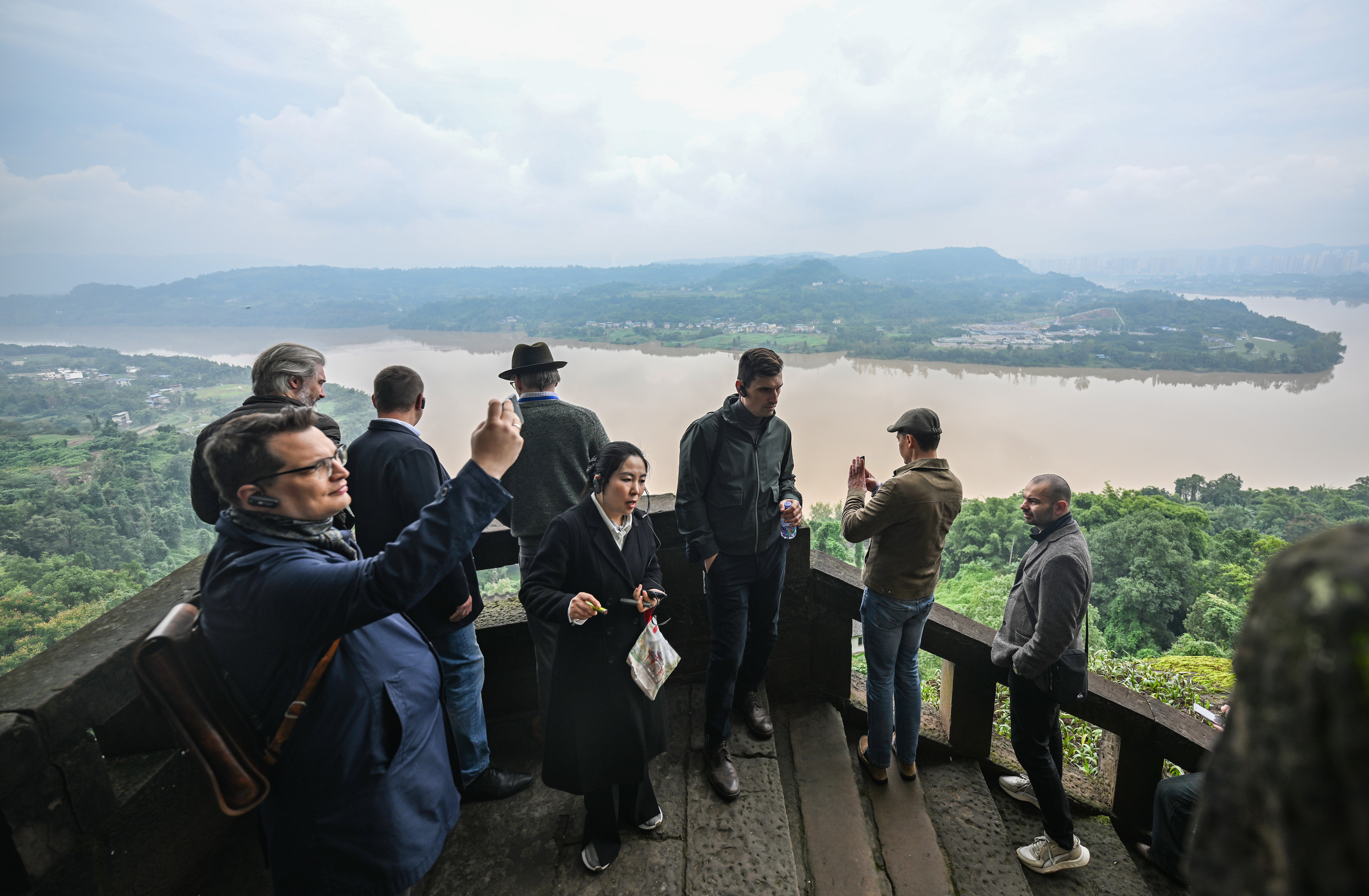 10月26日,代表团成员走进合川钓鱼城,沿着古城墙实地走访护国门、石照县衙、悬空卧佛等古迹,聆听“上帝折鞭处”的历史叙事,对这座见证宋蒙之战的古战场遗址叹为观止。