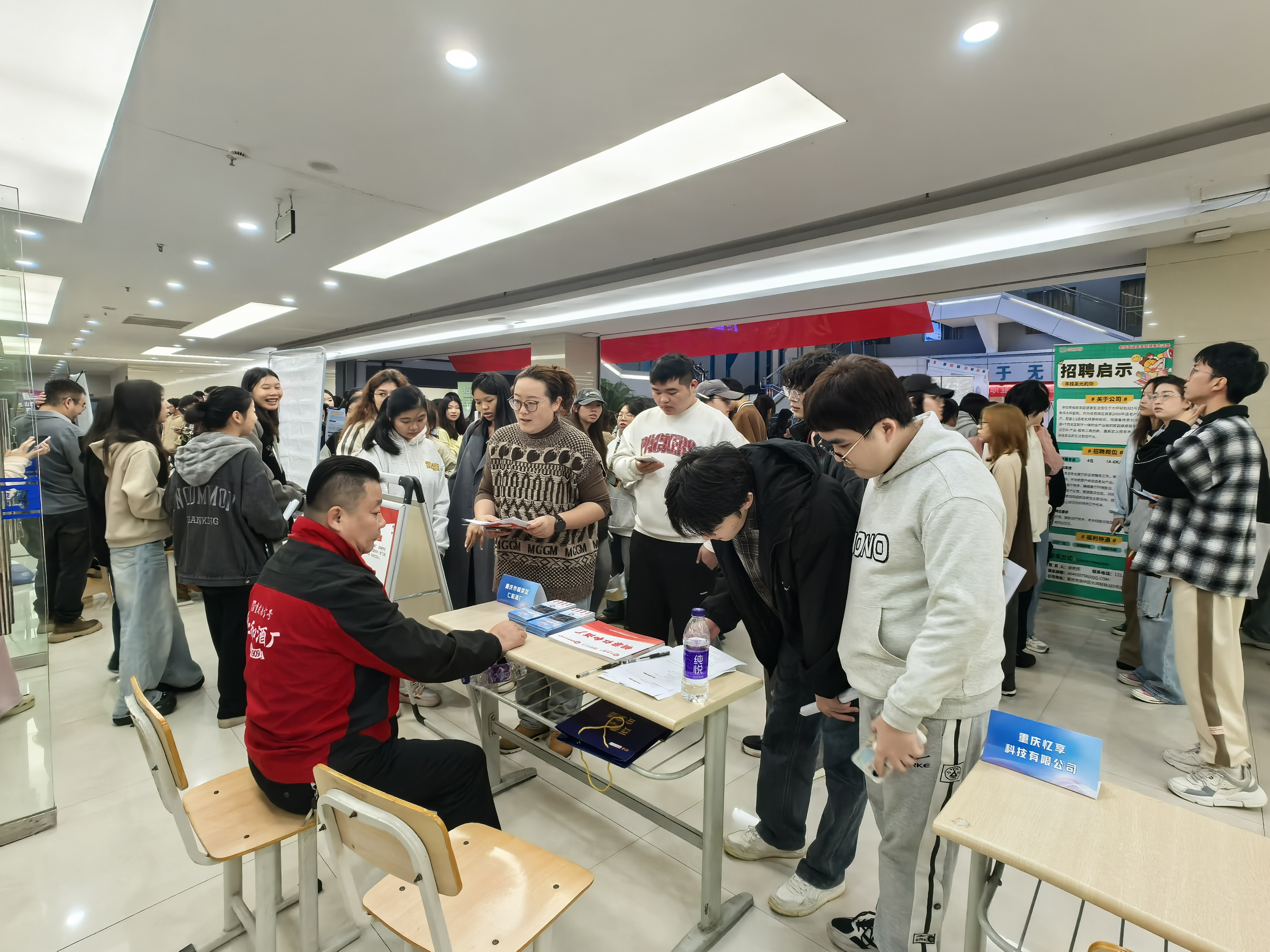 重庆舞林大荟文化传媒有限公司的展台前,人力资源负责人金莎对企业的发展规模与核心业务,以及招聘岗位的业务场景、薪酬福利体系等情况做了介绍,为学子们呈现了真实的职场发展空间,吸引了不少学生。“走进校园招聘效率很高,今天投递简历的同学很多。”金莎介绍,公司主要业务包括组织文化艺术交流活动、互联网销售及文化娱乐等,与两所高校的各个专业非常对口。