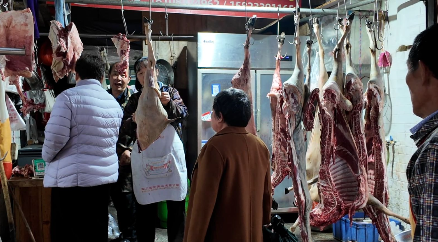 清晨的大足丁家坡农贸市场,早已是热闹非凡。各个羊肉摊位前挂满了新鲜的羊肉、羊排、羊杂,鲜红的肉质带着自然的光泽,吸引着络绎不绝的市民驻足挑选。摊主们手起刀落,称重、切块、打包,忙得不亦乐乎,空气中弥漫着新鲜羊肉的特有香气,尽显“立冬食羊”的节气氛围。