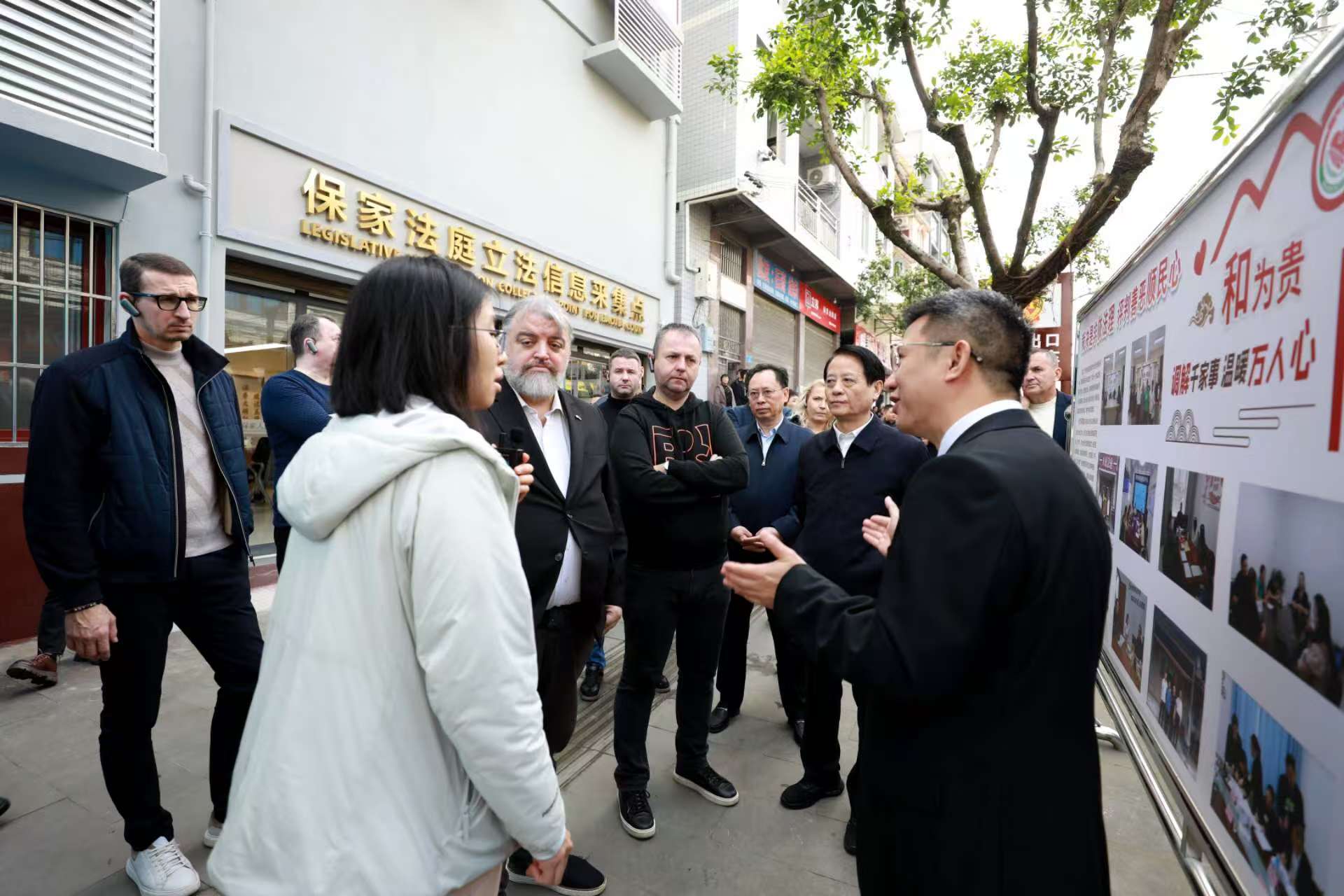 16日上午,外宾们前往保家基层立法联系点保家法庭立法信息采集点。该基层立法联系点肩负周边5个乡镇14余万群众与国家立法机关之间的沟通任务。保家法庭立法信息采集点自设立以来,参与34部法律法规草案征询,收集700余条意见建议,其中18条被采纳。外宾们表示,斯洛伐克在立法过程中,也会采取各种形式收集信息、听取建议。中国设立的基层立法联系点直接听取人民意见建议,很有启发意义。