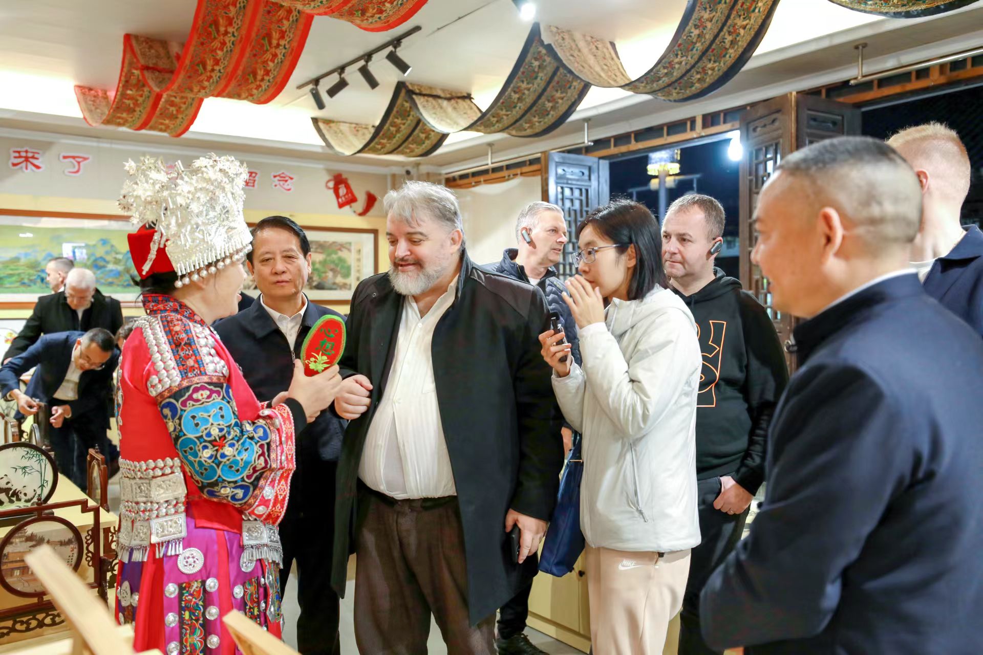 “这是一座大家提意见、大家一起建的城,也是各民族共赏文化、共话团结的家。”傍晚,外宾们走进蚩尤九黎城,近距离欣赏这一凝聚苗族同胞智慧、文旅专家建议与游客期待建设而成的苗族风情城。