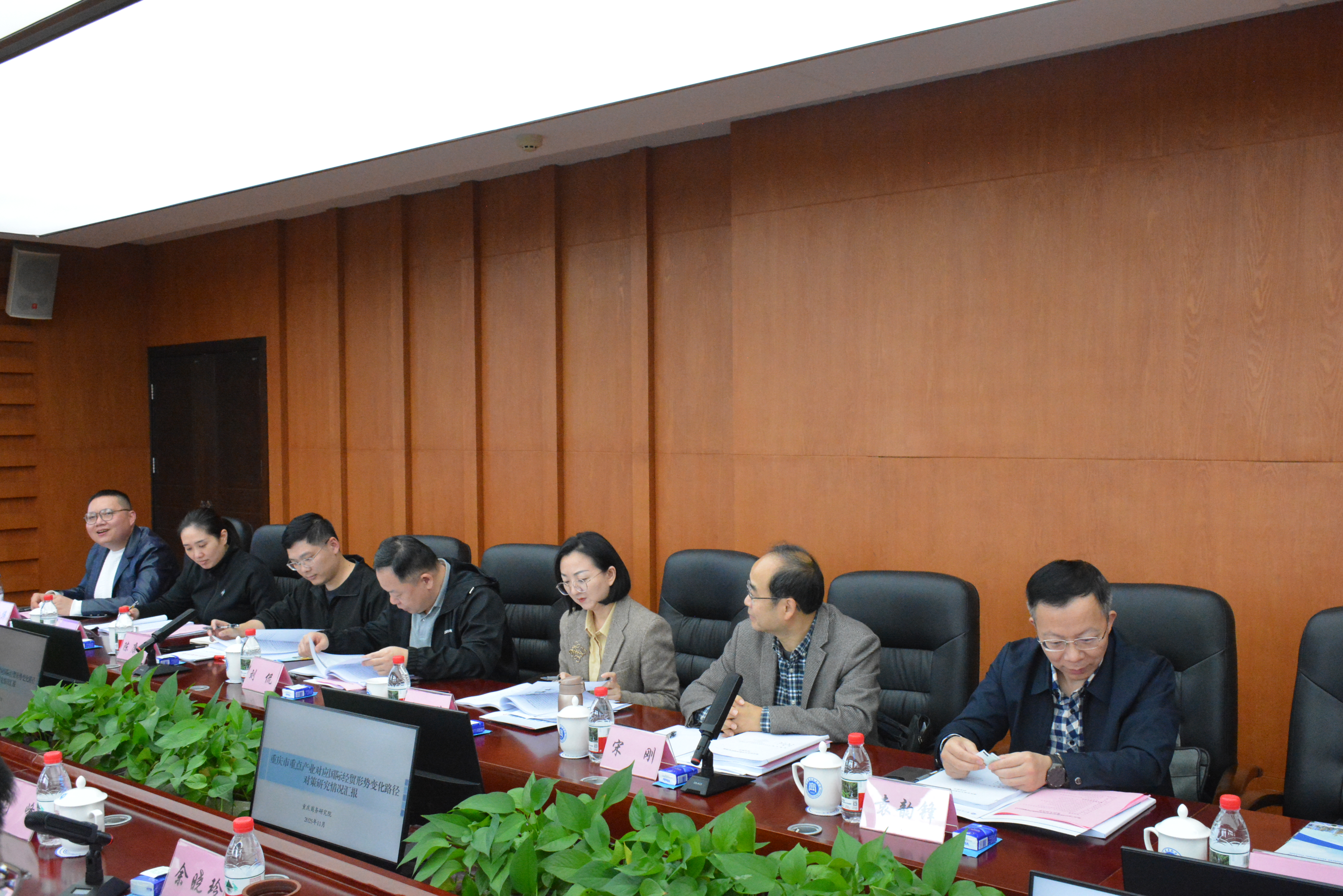 与会专家及嘉宾对课题前期研究成果予以充分肯定,一致认为研究报告内容丰富、数据翔实、提出的建议具有一定指导意义,并对下一步深化研究及加快成果转化提出了建议意见,重点围绕国际经贸形势变化及我市重点产业应对策略作了深入研讨。宋刚表示,应精准优化企业服务,关注外资企业在调整全球布局、重构供应链中面临的具体困难,引导支持外资企业将更高附加值、更绿色的生产环节落在重庆,实现本地化升级。袁韵锋指出,需密切跟踪国际市场政策动向,加强重点行业动态监测,建立健全产业安全预警体系,提升风险识别与防范能力。王欣强调,应加强贸易、投资与产业政策的协同,聚焦汽车、电子等支柱产业,推动出台针对性措施,助力企业稳订单、拓市场。李国田提出,要深化“市场多元化”战略,巩固传统市场,拓展“一带一路”和RCEP新兴市场,支持企业通过境外参展和跨境电商抓订单、拓渠道。刘侃建议,推动“跨境电商+海外仓+国际营销体系”三位一体协同发展,支持企业从“卖产品”向“建渠道、树品牌”转型升级。曾环宇表示,应充分发挥自贸试验区等开放平台的制度创新优势,依托中欧班列、陆海新通道等物流通道,提升贸易便利化水平。陈康玉认为,需加强政策统筹与效能评估,破除部门壁垒,推动各类工具协同发力,形成“一盘棋”政策支撑体系。马守霞指出,要密切关注国际时局演变,加快建立全市层面的“产业链风险预警与对策资料库”,分别从短期和长期角度提出对策。邹於娟提出,构建覆盖重点产业的“动态监测数据库”,运用大数据手段追踪全球市场变化,实现从“事后应对”到“事前预警”的转变。刘梦秋提出,要构建专业化服务生态,围绕研发设计、节能环保、信息技术等服务领域,培育一批专业化、品牌化的生产性服务业企业和平台。陈伟建议,应优化营商环境,建立重点企业“一对一”服务机制,及时回应和解决企业面临的痛点难点。