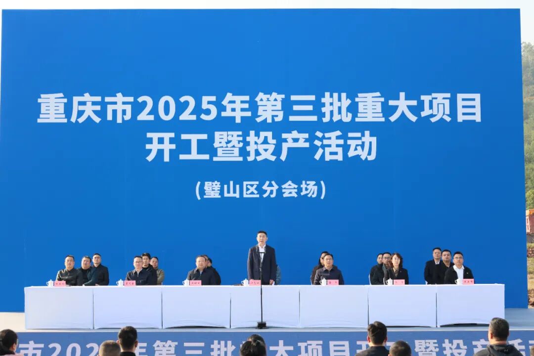 11月26日,重庆市2025年第三批重大项目开工暨投产活动举行,璧山区设分会场。璧山区委书记江志斌,区委副书记、区长唐军,区委副书记周树云,区领导吴莉、李义奎出席。