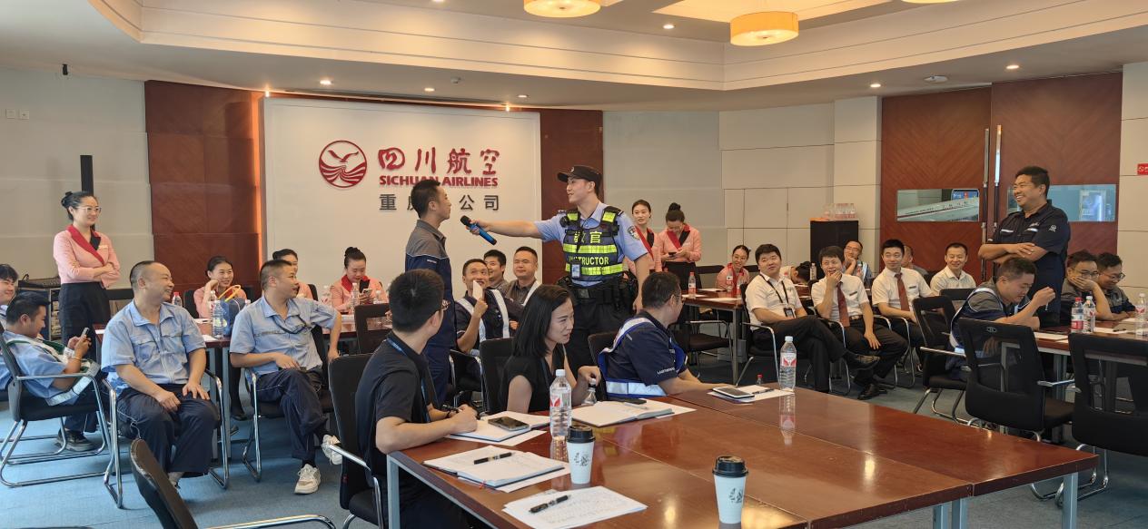 据悉,今年以来,西航站区派出所已为川航重庆分公司开展集中培训10次,覆盖各岗位员工260人次。从航空器消防安全操作到电信网络诈骗防范技巧,从机闹行为处置流程到禁毒知识普及,一系列精准对接行业需求的培训,为航空运输安全筑牢了“第一道防线”。