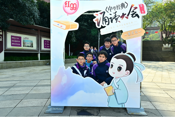 中央广播电视总台央广网副总裁朱建勇,中央广播电视总台重庆总站编委、办公室主任王磊,重庆市文化和旅游发展委员会一级巡视员钟前元,重庆市委教育工委专职副书记屈锐,重庆市总工会党组成员、副主席杨懿,重庆市关工委副主任韩国涛,著名诗人、重庆市委研究室离退休支部书记青玉章,重庆市教委教材和语言文字管理处处长邱小红,重庆市关工委秘书长雷雯霖,重庆两江巴蜀中学校副校长严冲,国家级普通话测试员、主任播音员、重庆首届“鸣声奖”终身成就奖获得者罗佳等领导嘉宾以及学校师生代表近300人参与活动,共赴这场经典之约。