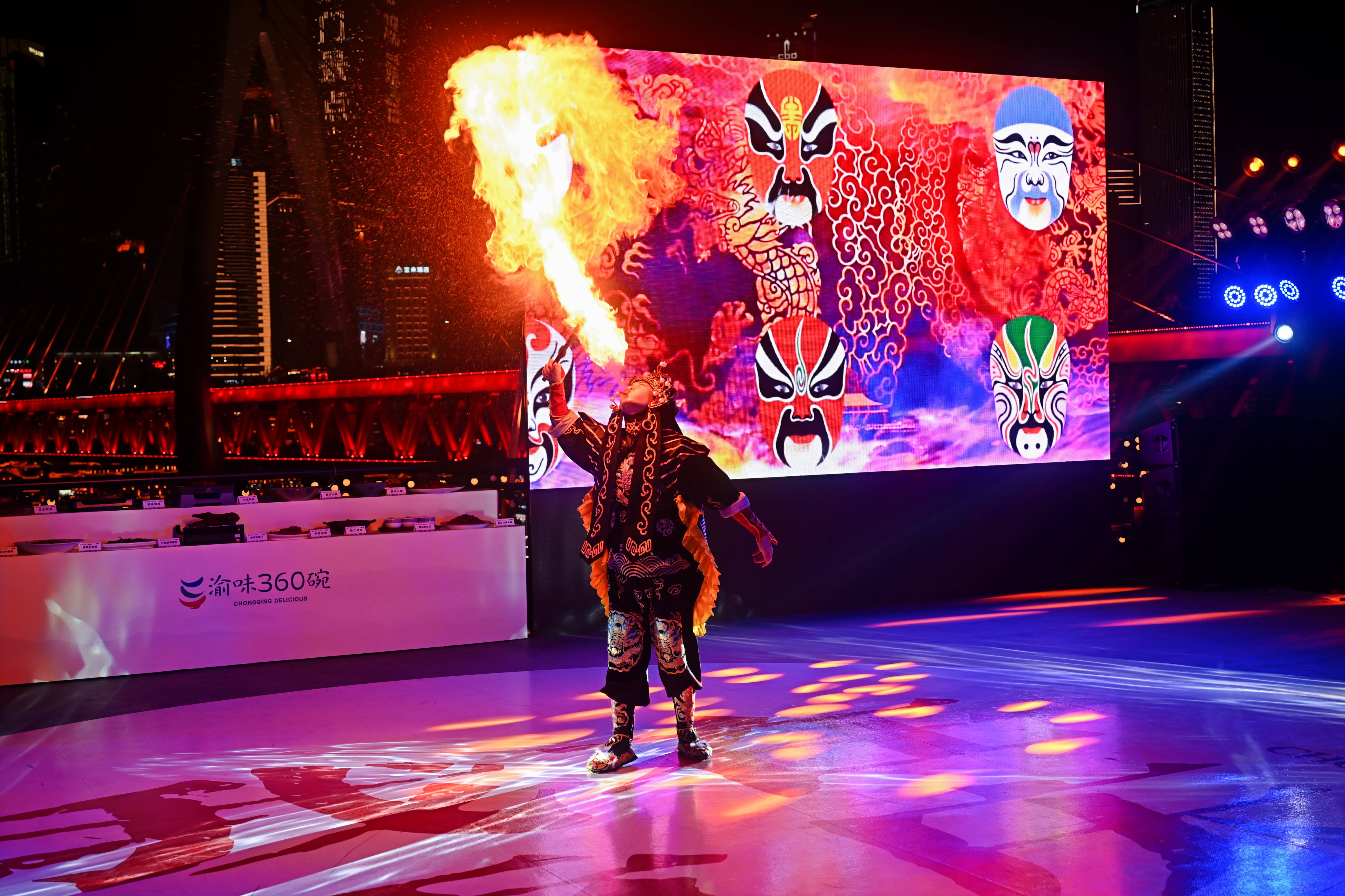 现场,有中医非遗技艺体验,好看的剧目片断和川剧变脸、乐队演唱,还有热气腾腾的火锅、小龙虾等你来吃……五大场景亮点交织,构建出一场集视觉、听觉、味觉、触觉于一体的文旅盛宴,将“夜重庆”的好看、好玩、好吃尽数囊括。