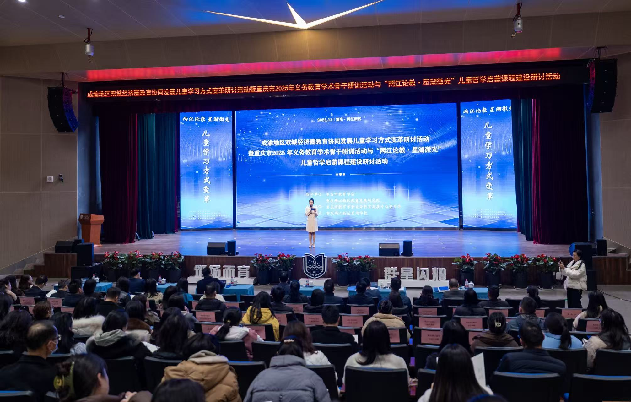 2025年12月12日,一场精彩纷呈的儿童哲学教学示范课在两江新区星湖学校举行。这次活动由重庆市教育学会义务教育专委会主办、两江星湖小学承办。新湖学校的《无以规矩不成方圆》、成都外国语学校的《牛和鹅》、重庆大学城人民小学的《“精彩极了”和“糟糕透了”》三堂示范课,紧扣精选的课文,层层解析、步步推进,由表入里、由浅入深,逐层发掘了课文字里行间蕴含的哲理;通过提升、应答、讨论、判断,引导学生们运用逻辑推理和辩证思维,作出判断、引出结论,从而增强分析问题、解决问题的能力。