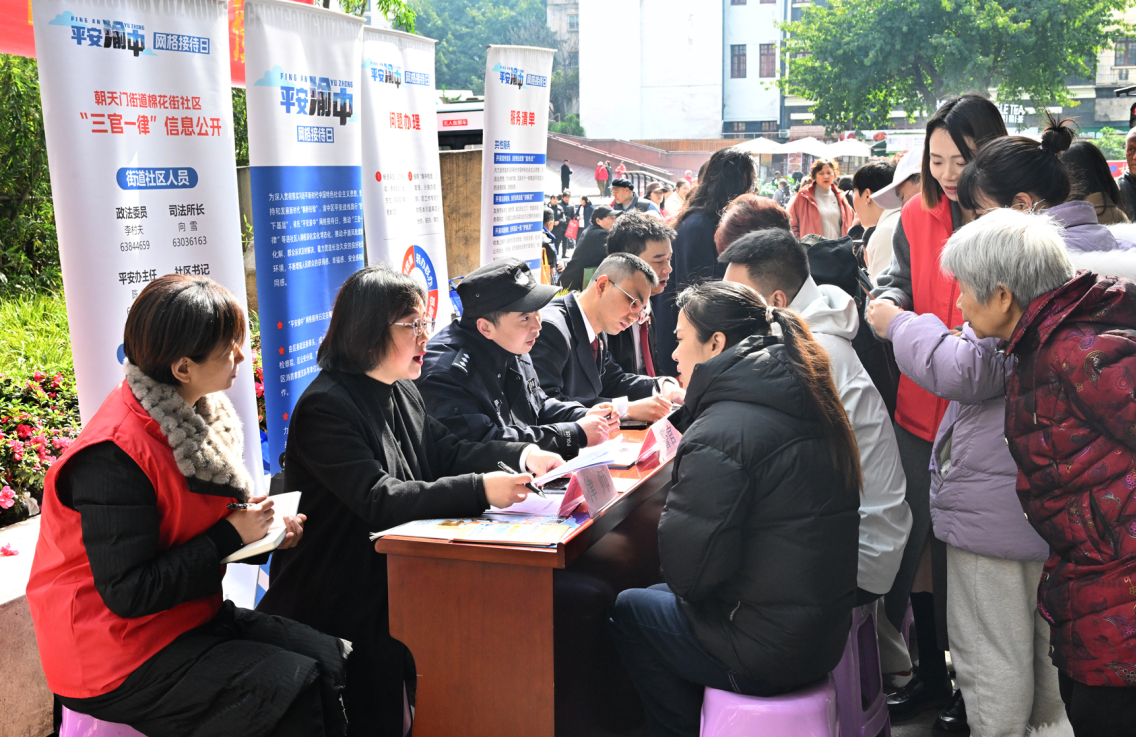 在渝中,像这样的现场接待活动已成常态。“我们以清廉政法建设为契机,创设‘平安渝中’网格接待日,践行‘一线工作法’,推动政法队伍走出机关、沉下网格。”渝中区委政法委常务副书记段陈缅介绍,该区将清廉底色融入政法工作肌理,转变纪律作风、晾晒政法服务、畅通监督渠道、办理群众诉求,“三官一律”316人常态化下沉一线,自2024年3月以来办理群众反映事项2987件。如今,“平安渝中”网格接待日已成为渝中政法工作的一张“名片”,2024年群众安全感达98.7%,同比提升0.2个百分点。